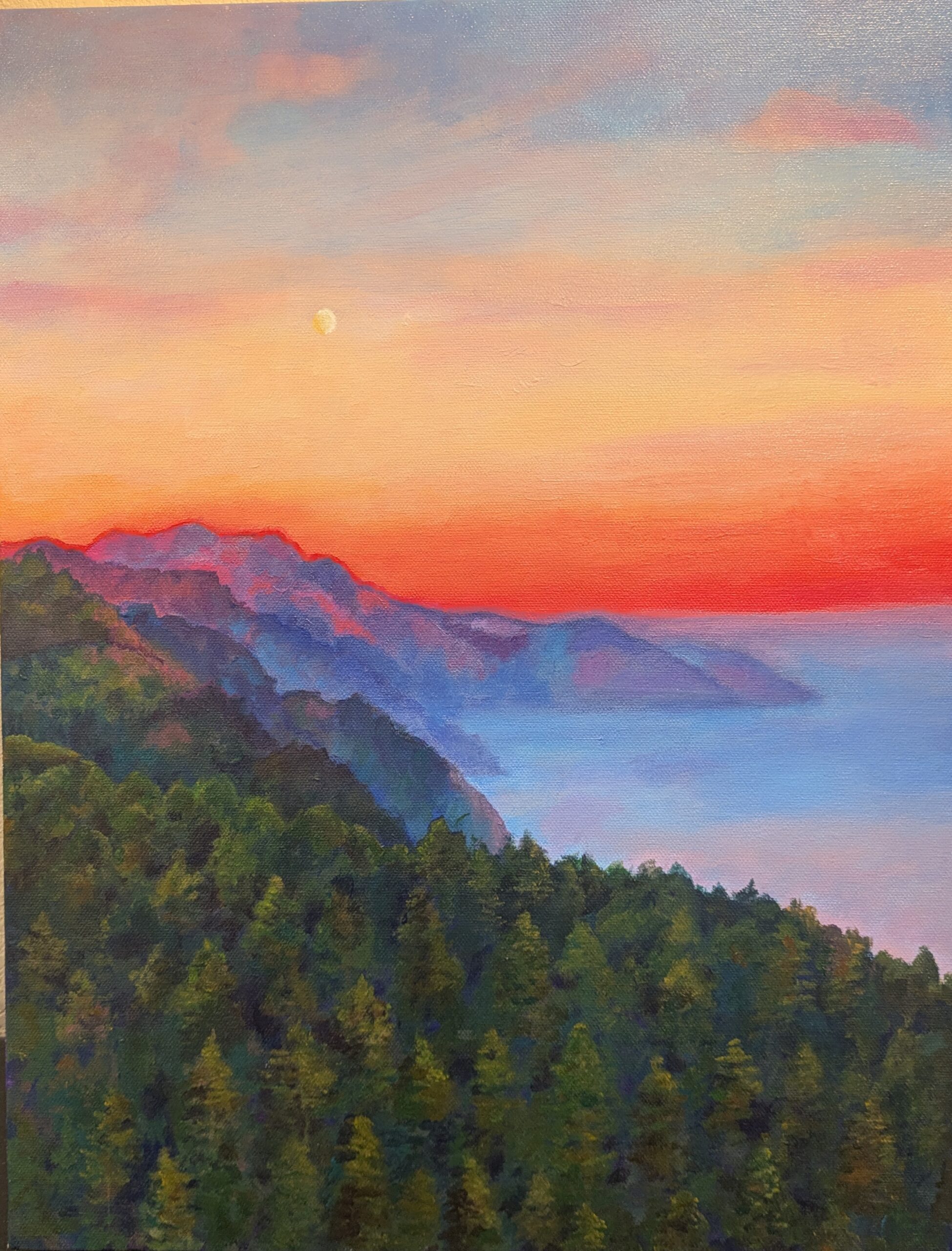 Rich sunset hues, acrylic on canvas. 16″ x 20″